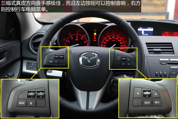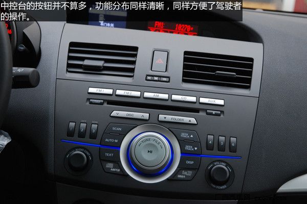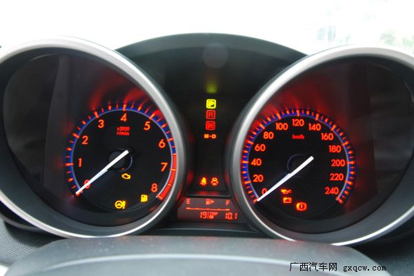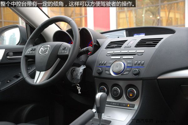 內(nèi)飾設計上馬自達3進行了許多大膽的嘗試,中控面板整體上一致了馬自達6的風格,層次感分明便于日常的使用。提供更富有質(zhì)感的內(nèi)飾是馬自達3的重點,黑色的內(nèi)飾更顯高檔,材質(zhì)也提供了良好的手感,銀色的多媒體按鈕很上檔次,而使用時手感同樣出色。橙色炫光的雙圓筒式儀表,相當炫麗,我想有不少消費者會為之而傾倒。