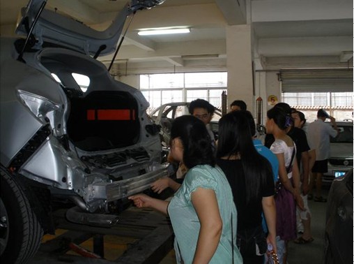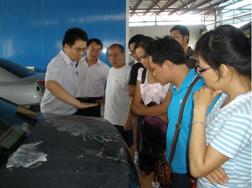 除了參觀各個(gè)車(chē)間作業(yè)區(qū),弘通別克4S店的技術(shù)總監(jiān)陳進(jìn)先生還以正在維修中的事故車(chē)為例,為車(chē)主們?cè)敿?xì)講解維修的細(xì)節(jié)和流程。