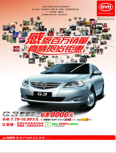 當(dāng)記者走進(jìn)比亞迪A3網(wǎng)某家4S店時(shí),迎面而來的不是一臉愁容的銷售人員,而是被一股股熱浪包圍的旺銷場景,熱鬧的銷售大廳恍如進(jìn)入汽車大賣場,組團(tuán)團(tuán)購、成群圍觀、全家上陣選車成了大廳里的風(fēng)景線。 “從12月10到1月20日,我們比亞迪廠家在全國開展‘感恩百萬銷量 真情賀歲鉅惠’大型優(yōu)惠活動,現(xiàn)在活動馬上就要到期了,大家都搶著購車呢!变N售人員面帶微笑向記者解釋,從他布滿血絲的雙眼看得出,最近4S店加班的次數(shù)不少!澳梢钥纯次覀僄3數(shù)智版豪雅型1.5L MT這款車型,現(xiàn)在鉅惠現(xiàn)金8000元,到20日就截止了”。帶著幾分探究,記者與現(xiàn)場幾位車主攀談起來: