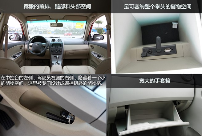 再來看看G3R天賦異稟的各項(xiàng)空間優(yōu)勢(shì)吧:從資料來看,G3R的長寬高分別達(dá)到4380×1705×1490mm,再加上2600mm的超長軸距,在同級(jí)別車型中相當(dāng)稀有,如此有競爭力的空間優(yōu)勢(shì)令G3R堪當(dāng)大任,也讓同級(jí)別車型花容失色。除了這些顯性的空間,G3R還擁有多項(xiàng)隱性的空間優(yōu)勢(shì):寬敞的前排、腿部和頭部空間,足可容納整個(gè)拳頭的儲(chǔ)物空間,寬大的手套箱,令人愛不釋手;中控臺(tái)左側(cè)、駕駛員右腿右側(cè),隱藏著一個(gè)專門放置遙控鑰匙的小儲(chǔ)物格,可謂人性化十足。獨(dú)坐車內(nèi),寬敞的空間、舒適的坐姿、愜意的享受,實(shí)可說是流連忘返、美不勝收,再開啟音樂播放器,陶冶下美妙的音樂,足以羨煞旁人!