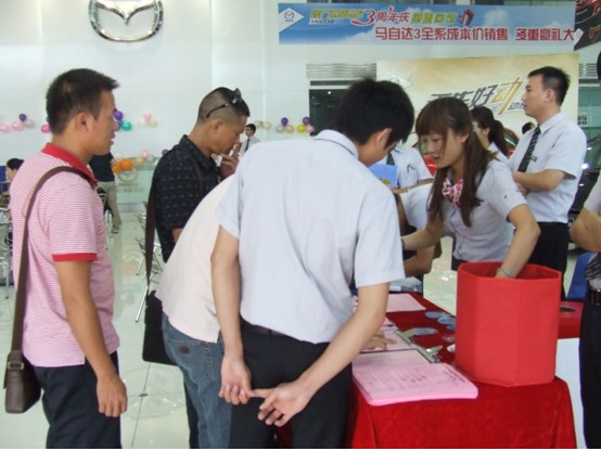 2011年7月31日,廣西鑫廣達長久汽車銷售服務(wù)有限公司三周年慶活動在店內(nèi)隆重舉辦,此次活動吸引來了眾多長安馬自達新老客戶參與,在新老顧客的支持和陪同下廣西鑫廣達長久汽車銷售服務(wù)有限公司三周年慶活動取得了圓滿結(jié)束。