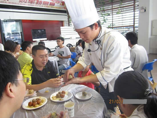 活動當(dāng)天,廣西弘通別克展廳活動區(qū)布置得煥然一新而喜慶,迎接八方來客。參加活動的車主及家人都非常的積極熱情,有的家庭在活動開始前1個小時就早早來到了現(xiàn)場;顒右婚_場,車主朋友們看到眼前擺放上制作月餅的材料和工具,就迫不及待地跟隨面點(diǎn)師傅動手“開工”:洗手、帶上手套、揉捏面團(tuán)……面點(diǎn)師傅一邊耐心地講解制作步驟,一邊走到大家身邊進(jìn)行指導(dǎo)?吹綆煾祦淼缴磉叄蠹沂菭幭瓤趾鬁愡^來不停地詢問,生怕自己制作的月餅不夠好,積極請師傅指點(diǎn)。