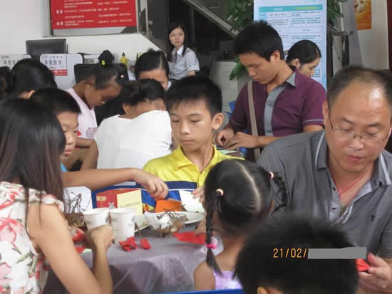 中秋節(jié)自然是少不了月餅,而做花燈、猜燈謎、玩博餅也是中秋佳節(jié)的傳統(tǒng)活動。在烘烤月餅時,廣西弘通別克心靈手巧的工作人員還親自教大家做花燈?吹狡恋幕粽故驹谖枧_上,全家總動員,每個家庭都齊心協(xié)力做起了手工活,男子做起手工活來也是非常認(rèn)真的哦。