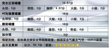 C-NCAP中國汽車技術(shù)研究中心是中國汽車碰撞的綜合性汽車科研機構(gòu),具有國內(nèi)最為全面的汽車碰撞試驗專業(yè)技術(shù)和經(jīng)驗,獲得國際同行的認可與肯定。在本次測試中,K5按規(guī)定進行了正面100%重疊剛性壁障碰撞、正面40%重疊可變形壁障碰撞以及可變形移動壁障側(cè)面碰撞3項試驗,得分分別為15.7、16(該項滿分)及16(該項滿分);而在加分項中,也憑駕駛員側(cè)、前排乘員側(cè)安全帶提醒裝置和側(cè)面安全氣囊及氣簾獲得3分滿分.最終K5以接近滿分的優(yōu)異表現(xiàn),榮膺“5星+”最高評價。這是繼IIHS“2011頂級安全車”、美國國家公路交通安全管理局(NHTSA)五星安全評價后,K5再獲安全殊榮。