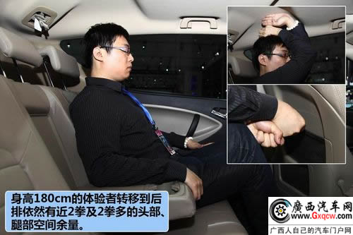 全球鷹GX7軸距與為2660mm,長寬高分別為4600mm、1855mm、1720mm。各方面車身尺寸都很不錯。以1.8米較胖男性來衡量,前排還有一拳左右的頭部活動空間,十分的寬敞。而調(diào)整好前排,同樣一個體驗者來到后排,竟然還有兩拳以上的腿部空間,外加一拳多的頭部空間,可見全球鷹GX7的各類空間著實寬敞。