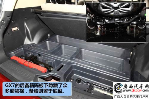 另外,全球鷹GX7的后排座椅還擁有軌道,可以前后滑動調(diào)節(jié)距離,不僅有利于更舒適的乘坐,也能為后備箱適當騰出一些空間,以便于承載大的物品。行李箱的空間看著已經(jīng)不小了,掀開地板,竟然還有大大小小6個暗格,其對于隨車物品的收納有了更好的安放之處。