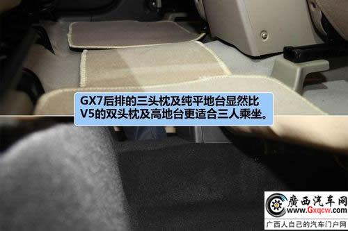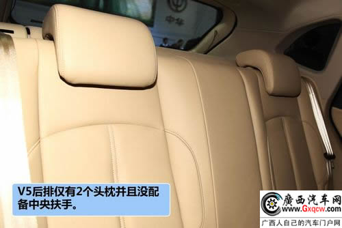 需要指出的是,兩車盡管都采用了真皮座椅,但全球鷹GX7是打孔設(shè)計,不僅更透氣,而且材質(zhì)更柔軟細膩,看上去的視覺感受也更舒服。而中華V5的真皮座椅材質(zhì)有些粗糙,除開不夠細致之外,填充物也比較硬,時間久了乘坐肯定不會太舒適。