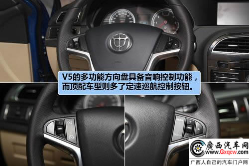當然中華V5也不缺乏電動天窗、真皮座椅這些常規(guī)功能,另外還擁有無鑰匙啟動、定速巡航這些更為舒適的配備。安全方面則是中華V5擁有更多優(yōu)勢,車身穩(wěn)定系統(tǒng)、上坡輔助以及胎壓報警這些為其加分不少。