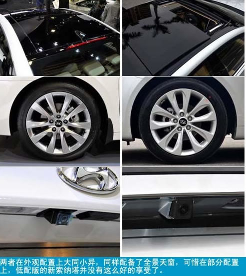 與高配版的國(guó)產(chǎn)索納塔相比,首次在國(guó)內(nèi)亮相的i40在外觀配置方面一點(diǎn)也不吃虧。全景天窗同樣出現(xiàn),不過(guò)兩者都有弊端,后文將會(huì)提到。i40配備的是NEXEN的225/45 R18輪胎,而NEXEN耐克森是韓國(guó)久負(fù)盛名的本土企業(yè)。搭配18寸的十分鋁合金輪圈視覺(jué)效果相當(dāng)不錯(cuò)。而索納塔的輪胎屬于米其林Primacy LC系列,相當(dāng)厚道,225/45 R18的尺寸也算是主流產(chǎn)品,至于倒車?yán)走_(dá)兩者都不缺少,當(dāng)然,在低配的索納塔中,就沒(méi)有這么好的享受了。
