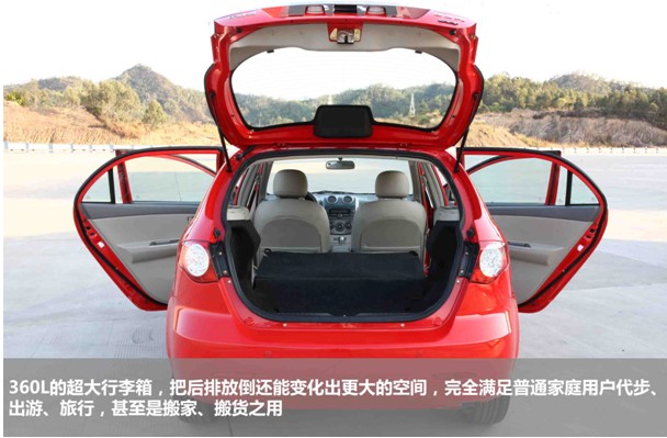 作為一款偏重家庭用戶的兩廂車,G3R極力營造空間的舒適感,因此,雖是兩廂車,G3R的乘坐空間卻足以確保乘坐者的寬敞舒適。數(shù)據(jù)顯示,其外觀尺寸為4380mm×1705mm×1490mm,2600mm的長軸距即使在三廂中級車面前也毫不遜色,相比其他主流兩廂車更是“霸氣外露”,駕駛空間和后排空間十分充足。車型內(nèi)部,各類貼心的儲物格設(shè)計(jì)細(xì)節(jié)到位,風(fēng)格溫馨。加上360L的超大行李箱,將后排座椅放倒后空間更大,完全滿足普通家庭用戶代步、出游、旅行,甚至是搬家、搬貨之用,空間多樣性之優(yōu)勢展露無遺?傮w來看,G3R的內(nèi)部空間倒是有點(diǎn)出乎筆者的意料。