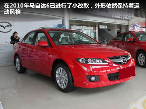 在2010年馬自達(dá)6已進(jìn)行了小改款,外形依然保持著運(yùn)動(dòng)風(fēng)格。全新車型的前臉變化最大,雖然前大燈沒有任何變化,但是前保險(xiǎn)杠、鍍鉻飛翼式進(jìn)氣格柵 均采用了馬自達(dá)轎跑式設(shè)計(jì)。同時(shí)采用了獨(dú)立前霧燈組合的設(shè)計(jì)。整體看起來更加時(shí)尚、更加動(dòng)感。同時(shí)全新馬自達(dá)6的另一個(gè)變化還體現(xiàn)在輪轂方面。全新的輪轂 采用五粗五細(xì)10輻式設(shè)計(jì)。