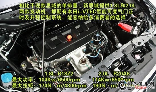 1.8L發(fā)動(dòng)機(jī)代號(hào)從原來的R18A1變?yōu)槿缃竦腞18Z2,從參數(shù)對(duì)比看,就是調(diào)教有了差異。最大功率104Kw/6500rpm(R18A1的最大功率為103Kw/6300rpm),174N•m/4300rpm的最大扭矩沒有任何變化(自動(dòng)檔車型綜合油耗6.8L)。新增的R20A6 2.0L發(fā)動(dòng)機(jī)最大功率114Kw/6500rpm,最大扭矩190N•m/4300rpm,提供給消費(fèi)者多一種選擇。以一輛家用車來看的話,增大10Kw的功率和16N•m的扭矩卻要為此多付出0.6L的綜合油耗顯然不太值得,不過若是從駕駛來看,也許選擇就是相反的了。