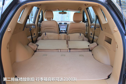 在第二排座椅不放倒的情況下,行李倉空間為690L,如果將后排座椅完全放倒,行李倉空間可達到2100L,長度超過1.8米,躺下一位成年人不成問題。細節(jié)方面的設(shè)計體現(xiàn)在標準配置的網(wǎng)兜,可以放置一些容易在后備箱滾來滾去的物品,因為備胎設(shè)計在車底后部,所以底板下部設(shè)計有做工不錯的儲物格,在這樣看不見的位置華泰汽車還是下了一定的工夫的。