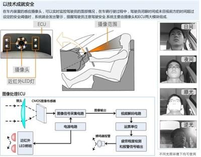“BAWS疲勞駕駛預(yù)警系統(tǒng)”是基于駕駛員生理圖像反應(yīng),由ECU和攝像頭兩大模塊組成。利用駕駛員的面部特征、眼部信號(hào)、頭部運(yùn)動(dòng)性等推斷駕駛員的疲勞狀態(tài),并進(jìn)行提示報(bào)警和采取相應(yīng)措施的裝置,同時(shí)還具備對(duì)環(huán)境的強(qiáng)抗干擾能力,對(duì)車主行車安全給予主動(dòng)智能的安全保障。