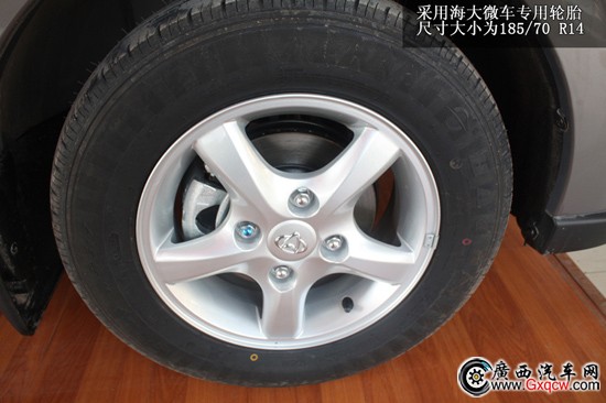 歐諾采用了五幅式鋁合金輪轂,尺寸大小為185/70 R14,雖然造型簡單,但極具張力。