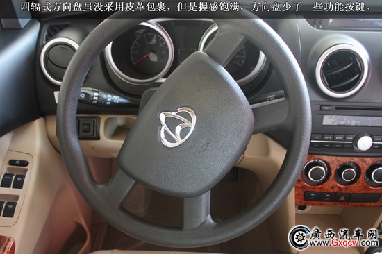 四幅式方向盤雖然沒用采用皮革包裹,卻也粗細適中、握感較好,但方向盤中沒有多功能按鍵,給人小有遺憾。