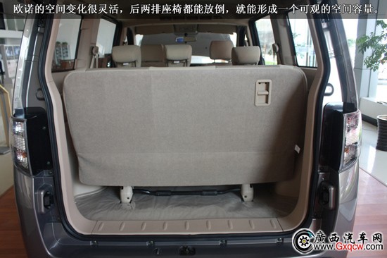 歐諾后備箱儲物能力并不強,但作為一款功能車,歐諾的空間變化很靈活,后兩排座椅都能放倒,這樣就能形成一個相當可觀的行李空間,這正符合歐諾設(shè)計之初的載貨需求。