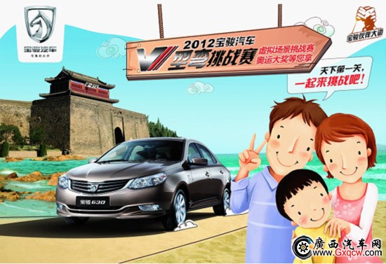 5月12日,“V動隨心,伙伴同行-2012寶駿汽車V型彎挑戰(zhàn)賽”烽火重燃,南寧遠昌寶駿4S店給力開賽!帶上您最可靠的伙伴,一起報名參加挑戰(zhàn)賽吧!報名參賽均有禮品贈送!