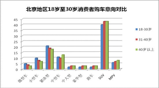 據(jù)2011年,一項針對北京市場18歲-40歲以上購車者的調(diào)查顯示,年齡在31歲至40歲的用戶對于SUV的購買意向更強(qiáng),明顯要高于比18歲至30歲用戶。而且不同于購買第一輛的年輕人,那么看重車輛的外觀與內(nèi)飾;許多準(zhǔn)備置換購車的老車主,則基于多年的親身用車經(jīng)驗(yàn),更強(qiáng)調(diào)車輛的“實(shí)用性能力”,品質(zhì)好,結(jié)實(shí)耐用、空間寬敞、油耗低…..才是他們最為關(guān)心的問題。
