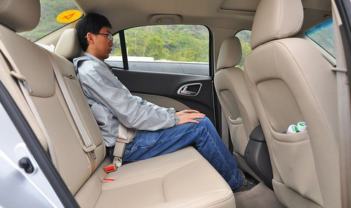 腿部空間較寬裕,頭部空間稍緊湊而和廠家人員交流后得知,空間方面在設(shè)計時也進行了一番權(quán)衡。出于優(yōu)先考慮后排腿部空間的出發(fā)點,后排座椅位置選擇了相對整體后移了一些,并且后排坐墊也采用了相對較短的設(shè)計(好在我在幾十分鐘的短途乘坐過程中并未發(fā)覺不適),以便騰出更多的腿部伸展空間。