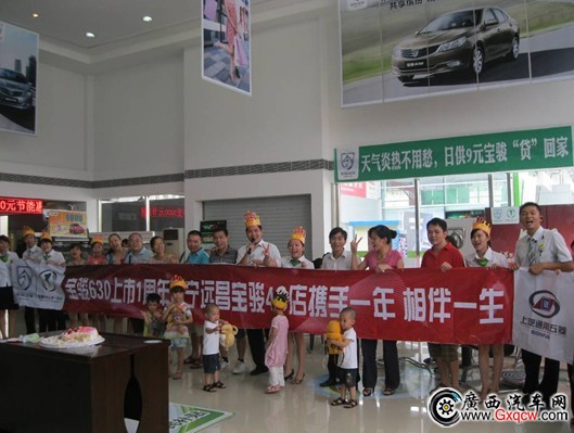 2012年8月11日,南寧遠昌寶駿4S店邀約了15位寶駿家庭到店,為寶駿630上市1周年舉辦了一場別開生面的生日宴會。