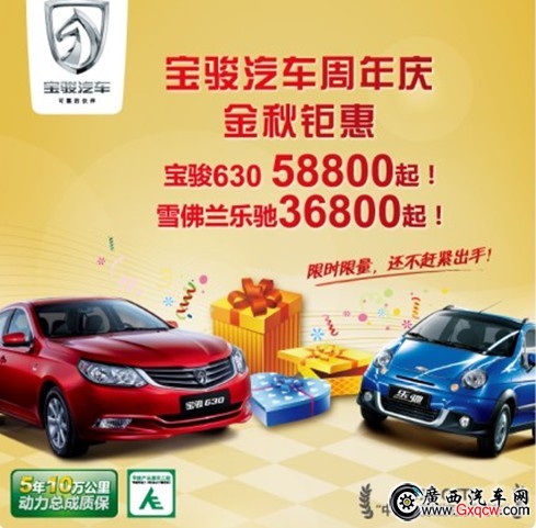 寶駿金秋矩惠630 5.88萬元起購,雪佛蘭樂馳3.68萬元起購。