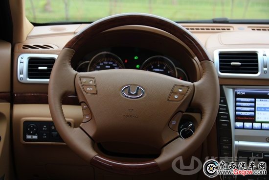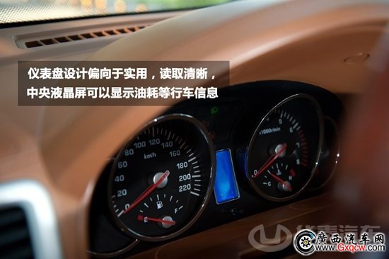 試駕的高配車型采用的木質(zhì)與真皮包裹方向盤給人提供了不錯的質(zhì)感,尺寸在SUV車型中中規(guī)中矩,多功能按鍵提供了定速巡航調(diào)節(jié)等功能,操作較為順手。儀表盤設(shè)計偏向于實用,讀取清晰,中央液晶屏可以顯示油耗等行車信息。