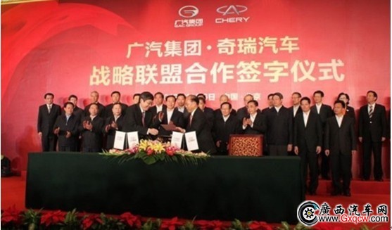 11月6日,在北京釣魚臺國賓館,廣汽與奇瑞正式簽訂戰(zhàn)略聯(lián)盟合作協(xié)議。以在整車、核心零部件和新能源技術(shù)研發(fā)、體系能力建設(shè)等數(shù)個領(lǐng)域“展開深度合作與共享”。