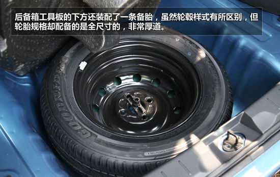 而打開后備箱下方的隔板后,歐力威同樣為我們帶來了驚喜,常用的應(yīng)急工具一應(yīng)俱全,并且在這個(gè)隔板下方,還隱藏著一條全尺寸的備胎,雖然樣式與原車不同,但已經(jīng)非常實(shí)用了。