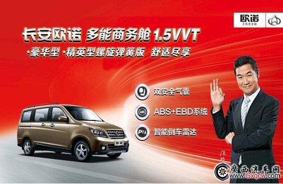長(zhǎng)安歐諾1.5L豪華型全新配備雙安全氣囊、ABS+EBD安全控制系統(tǒng)、智能倒車(chē)?yán)走_(dá)、皮革座椅、后除霜除霧等多項(xiàng)人性化配置,更有精英型新增螺旋彈簧版供您選擇。長(zhǎng)安歐諾邀您盡享“多能商務(wù)艙”舒適本色,敬請(qǐng)到南百汽車(chē)品鑒,試駕更享好禮!