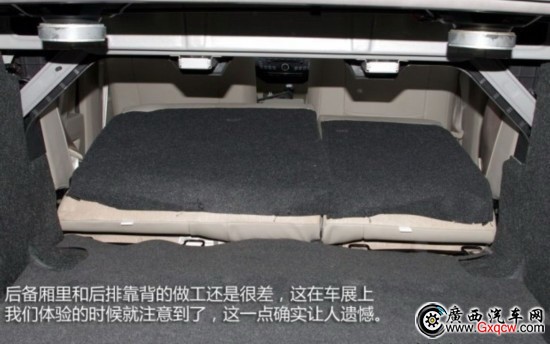 后備廂在容積方面沒有問題,不管是實際測量的深度和最大寬度都比較令人滿意,總體容積也達到了620L這個同級車的上流水平;問題是出在內(nèi)部的做工上,從這款車在2012年的車展亮相開始到現(xiàn)在,后備廂的內(nèi)部做工看起來始終是那么粗糙,廠家確實沒有意識到這方面的問題。