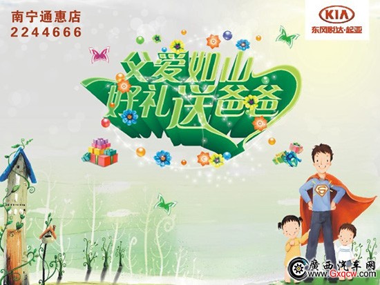多少座山崔嵬也不能勾勒出您偉岸;多少個(gè)超凡歲月也不能刻畫出您面容風(fēng)霜,父親,男人最溫柔的名字。父親節(jié),在這表達(dá)愛和親情的日子,東風(fēng)悅達(dá)起亞南寧通惠4S店在展廳內(nèi)開展“父愛如山 好禮送爸爸”主題活動(dòng)。6月15-16日,父親的專場(chǎng),惠享全系車型,父愛如山,讓我們?cè)诟赣H節(jié)來(lái)臨之際為父親送上最真摯的祝福。詳詢0771-2244 666,地址:南寧市白沙大道69號(hào)。
