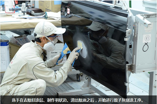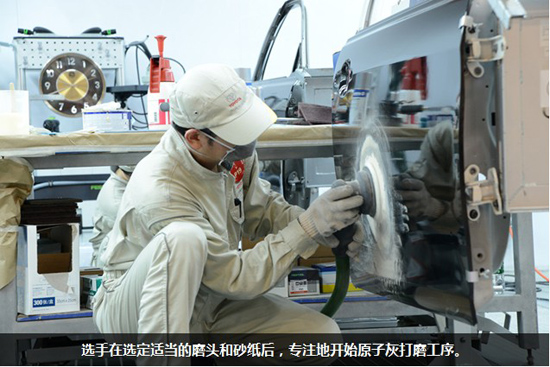 鈑金和噴漆是汽車(chē)維修常見(jiàn)的項(xiàng)目,但要做好,并不簡(jiǎn)單。僅噴漆一項(xiàng)就分為上十道工序,一環(huán)扣一環(huán),一項(xiàng)工序處理不好就會(huì)影響到最終的噴涂效果!皣娡繉(duì)技能要求很高,”一位選手告訴記者,“溫度、距離、時(shí)間等都會(huì)對(duì)噴涂效果造成影響,只有每一道工序都嚴(yán)格按照廣汽豐田噴漆標(biāo)準(zhǔn)完成,才能確保最終的出品質(zhì)量!
