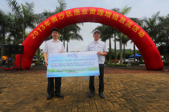 廣汽豐田黨委書記嚴壯立 把25萬元魚苗捐贈給南沙區(qū)副區(qū)長霍陽