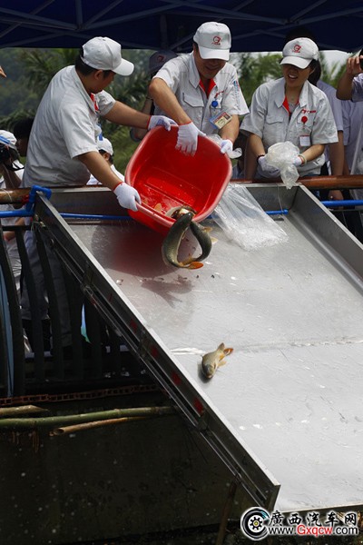 據(jù)工作人員介紹,廣汽豐田在舉辦增殖放流活動時,十分重視科學性,不僅精心選擇合適的魚種,而且十分重視放流的時間、地點和水體質(zhì)量等因素,這樣才能保證魚苗的成活率,更好地實現(xiàn)放流的生態(tài)效益。在放流活動前,主辦方邀請了專業(yè)機構(gòu)對魚苗、放養(yǎng)流域的水質(zhì)進行至少兩次嚴格的檢驗,確保指標達到放流標準;在魚種選擇方面,綜合考慮南沙當?shù)厮、氣候的特點,兼顧生態(tài)和經(jīng)濟效益,合理安排放養(yǎng)魚種。以今年的魚種選擇情況為例,廣東魴、黃鰭鯛、小虎麻蝦、黃鯔等魚種是重要的經(jīng)濟魚類,經(jīng)濟價值較高;黃鰭鯛、小虎麻蝦更是南沙當?shù)氐拿麅?yōu)水產(chǎn)。而本次放流魚種之一的胭脂魚則是國家Ⅱ級保護野生動物,在人工飼養(yǎng)條件下,難以育成,選擇這個魚種是出于在自然環(huán)境中保育國家級野生動物的目的。同時為了在放流時更好地保護魚苗,避免魚苗落水時因沖擊力過猛造成損傷,廣汽豐田為本次活動特別訂做了25個放流槽,并贈予南沙區(qū)政府,以作日后增殖放流活動之用。