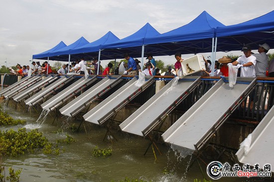 6月6日,南沙濱海公園熱鬧非凡。來自南沙區(qū)政府和廣汽豐田的領(lǐng)導(dǎo)、廣汽豐田員工、經(jīng)銷商、供應(yīng)商、車主代表以及南沙當?shù)鼐用窠?00人齊聚這里,共同參加2013年南沙區(qū)增殖放流活動。