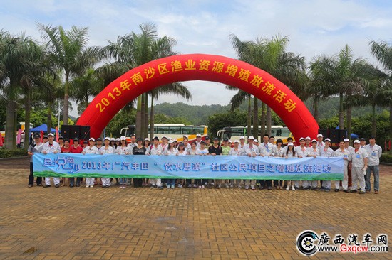 踏入2013年以來,各類環(huán)境問題不斷爆發(fā),PM2.5超標、死豬漂流、禽流感等一系列生態(tài)環(huán)境問題無時不在威脅著我們的生存。為此,我國以“同呼吸 共奮斗”作為2013年世界環(huán)境日的中國主題,倡導(dǎo)在同一片藍天下生活、呼吸的每一個公民牢固樹立保護生態(tài)環(huán)境的理念,為建設(shè)美麗中國共同努力。響應(yīng)保護環(huán)境的號召,廣汽豐田于6月6日攜手南沙區(qū)政府開展第七屆“飲水思源”增殖放流活動,為保護南沙海域的生態(tài)環(huán)境貢獻力量。本次活動上,廣汽豐田共放流魚苗將近380萬尾。