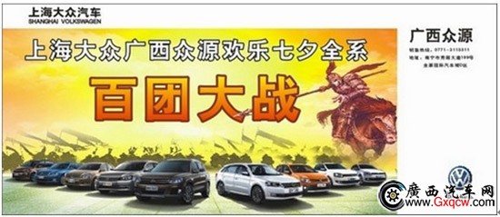 炎炎夏日,全城熱戀。8月9日【上海大眾廣西眾源 歡樂七夕全系百團(tuán)大戰(zhàn)】浪漫來襲引爆八月鉅惠盛宴。9-11日,上海大眾廣西眾源七夕最惠時(shí)刻,60臺(tái)廠家直供現(xiàn)車非你莫屬,機(jī)會(huì)不容錯(cuò)過!