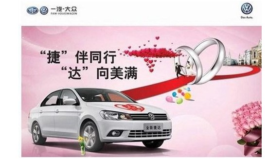 即日起到2014年4月30日,長(zhǎng)久鑫廣達(dá)一汽-大眾全新捷達(dá)婚禮賓車隊(duì)“為愛(ài)護(hù)航”活動(dòng)正式開(kāi)始。為了讓新人們能夠完美的邁入婚姻的殿堂,長(zhǎng)久鑫廣達(dá)一汽-大眾將攜手全新捷達(dá),組成溫馨浪漫的婚車車隊(duì),現(xiàn)向全體南寧市民進(jìn)行招募。
