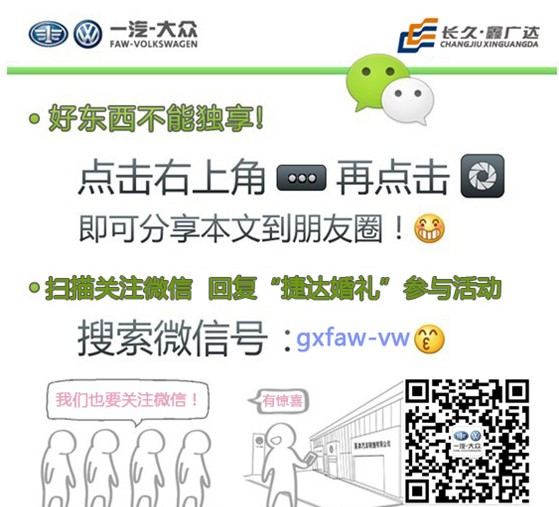 參與方式:登陸汽車空間(www.gxfaw-vw.com)進(jìn)入主題頁(yè)面,填寫相關(guān)資料并備注“捷達(dá)婚禮”或掃一掃關(guān)注官方微信(gxfaw-vw),回復(fù)“捷達(dá)婚禮”即可獲得參與資格。