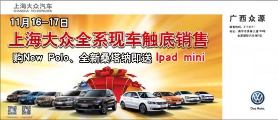 11月16-17日,金源集團(tuán)18周年回饋大行動(dòng)即將拉開上海大眾各系車型優(yōu)惠大幕,廣西眾源特惠觸底價(jià)格傾情回饋。
