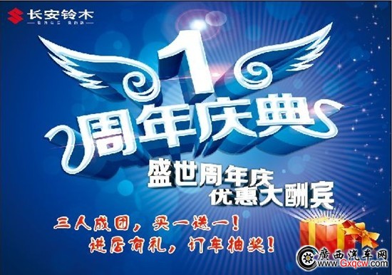 恰值開業(yè)一周年,12月21日,廣西恒晟長(zhǎng)安鈴木旗艦店周年慶活動(dòng)盛大啟幕,為回饋廣大客戶,將推出多款讓利特價(jià)車輛,優(yōu)惠幅度超乎您想象!三人成團(tuán),買一送一,讓您暢享年末長(zhǎng)安鈴木盛世周年慶,鉅惠大酬賓,盡在廣西恒晟——長(zhǎng)安鈴木之家!