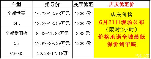 活動車型:全新愛麗舍、世嘉、C4L、C5、C3-XR