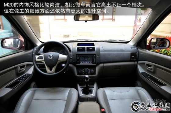 M20的內(nèi)飾風(fēng)格比較簡潔明了,多功能方向盤上采用了大面積地銀色裝飾,同時中控臺上的可觸摸式液晶屏功能更為強大,支持藍牙電話、GPS導(dǎo)航、SD卡、USB、AUX等外接音源,將U盤插入其中,不僅能播放其中的歌曲,連其中的照片也可讀取。