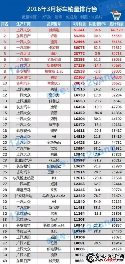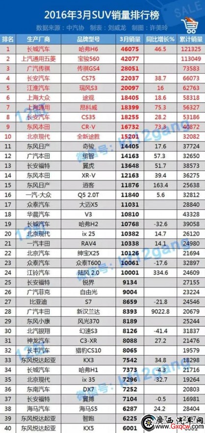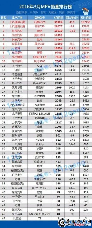 2016年3月國(guó)內(nèi)狹義乘用車(chē)總銷(xiāo)量1961203輛。其中轎車(chē)銷(xiāo)量為1039193輛,同比下降了3.3%;SUV銷(xiāo)量為698791輛,同比增長(zhǎng)44.4%;MPV銷(xiāo)量為223219輛,同比增長(zhǎng)12.5%。