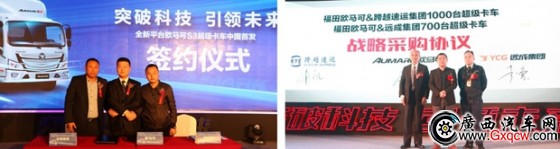 以創(chuàng)新的成就鑄造輝煌,以卓越的產(chǎn)品實(shí)力贏得用戶口碑,歐馬可榮譽(yù)的取得是來自行業(yè)的認(rèn)可,更是來自客戶的肯定。歐馬可超級(jí)卡車以科技創(chuàng)新續(xù)寫行業(yè)奇跡,在全新平臺(tái)歐馬可S3、S5兩款超級(jí)卡車的上市之初就實(shí)現(xiàn)了超千臺(tái)的訂單。2016年10月27日全新平臺(tái)歐馬可S3超級(jí)輕卡上市發(fā)布會(huì)現(xiàn)場(chǎng),歐馬可與中鐵物流和跨越速運(yùn)公司現(xiàn)場(chǎng)分別簽訂了1000臺(tái)和800臺(tái)的超級(jí)卡車戰(zhàn)略簽單;而在2017年2月27日的全新平臺(tái)歐馬可S5超級(jí)中卡上市發(fā)布會(huì)現(xiàn)場(chǎng),便再次與跨越速運(yùn)和遠(yuǎn)成集團(tuán)達(dá)成了1000臺(tái)、700臺(tái)超級(jí)卡車戰(zhàn)略簽單。兩次簽約,超三千臺(tái)的訂單,歐馬可的產(chǎn)品實(shí)力可見一斑。