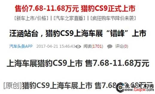 錯(cuò)過(guò)了品牌發(fā)布會(huì)高峰,也錯(cuò)過(guò)了媒體日?qǐng)?bào)道高峰,但是在今天上市的獵豹CS9卻沒(méi)錯(cuò)過(guò)各大媒體的頭條位置。