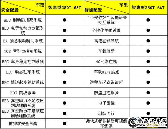 另外,科技配置方面,280T 6AT智惠型車型還擁有in Call 智能車載互聯(lián)系統(tǒng),可以用語(yǔ)音就可以操控藍(lán)牙,導(dǎo)航等多項(xiàng)日常所需配置。安全駕駛方面,280T 6AT智惠型車型更是擁有陡坡緩降、坡道起步輔助系統(tǒng)、動(dòng)態(tài)駐車系統(tǒng)、緊急制動(dòng)輔助系統(tǒng)等等多項(xiàng)車身電子穩(wěn)定系統(tǒng)。整體看下來(lái),11.58萬(wàn)元買一款這么多配置的自動(dòng)擋車型,可以說(shuō)相當(dāng)實(shí)惠了。