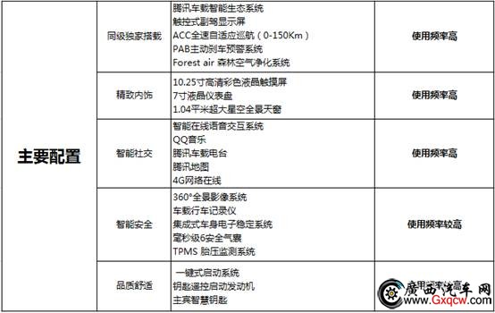 以長安CS35 PLUS為例,相較于“前輩”CS35,其在配置上有著很大的提升,小編將主要配置與使用頻率進(jìn)行了簡單的歸納,具體如下:
