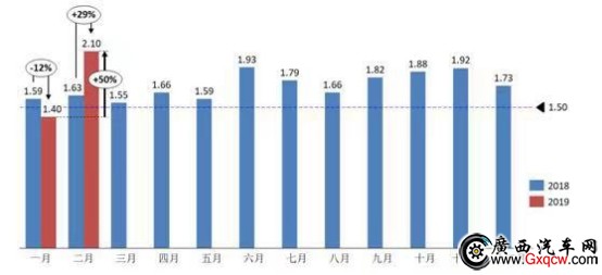 3月10日,中國汽車流通協會對外公布,2019年2月經銷商綜合庫存系數為2.1,同比上升29%,環(huán)比上升50%;庫存預警指數為63.6%,環(huán)比上升4.7%,庫存預警指數位于警絨線以上。這意味著,繼1月庫存增加之后,汽車廠家仍舊在2月這個春節(jié)所在的淡季月份,持續(xù)向經銷商“庫存”。